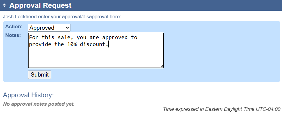 Approvers will also have the option to add notes in order to let the user know what needs to be changed in order to approve the document.