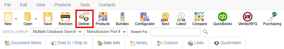 11. We are now ready to deliver this quote to the customer. To do so, click on the deliver icon. This opens the print, share, publish, deliver document window.