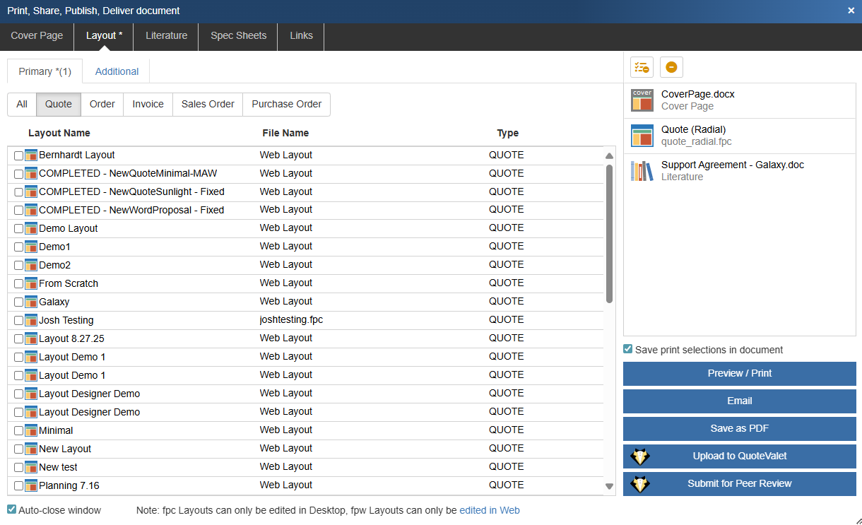 12. Here you can select your layout, cover page, literature, spec sheets, and links.