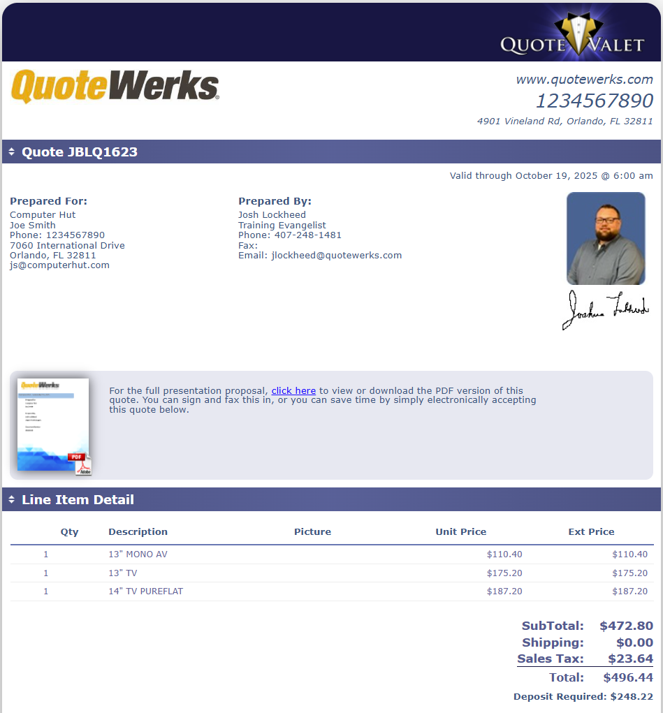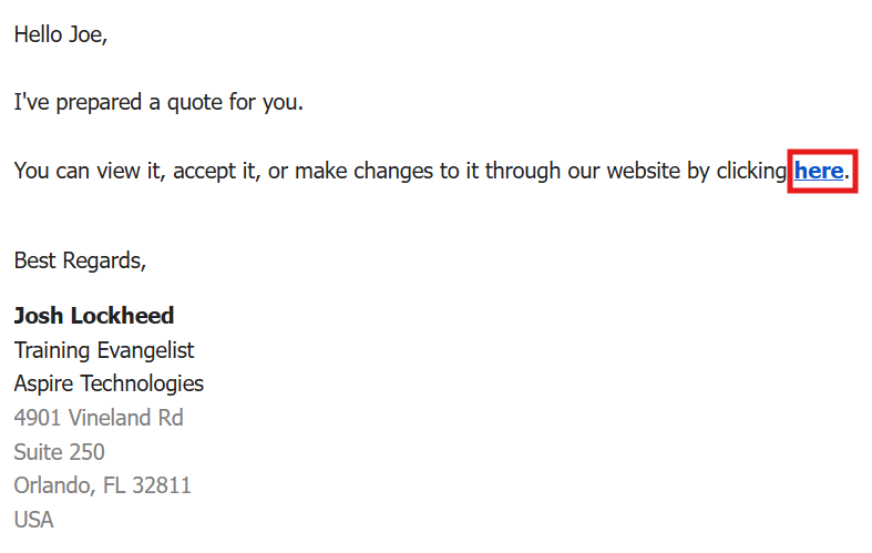 16. Once the customer receives the email, they can click on the QuoteValet link to open their interactive quote.