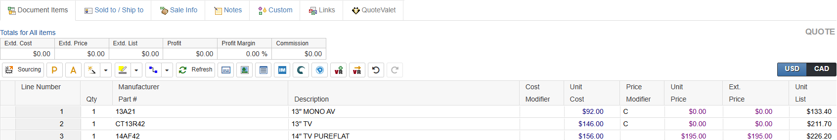 For a guided overview of how to create a quote please see the Creating a Quote video.