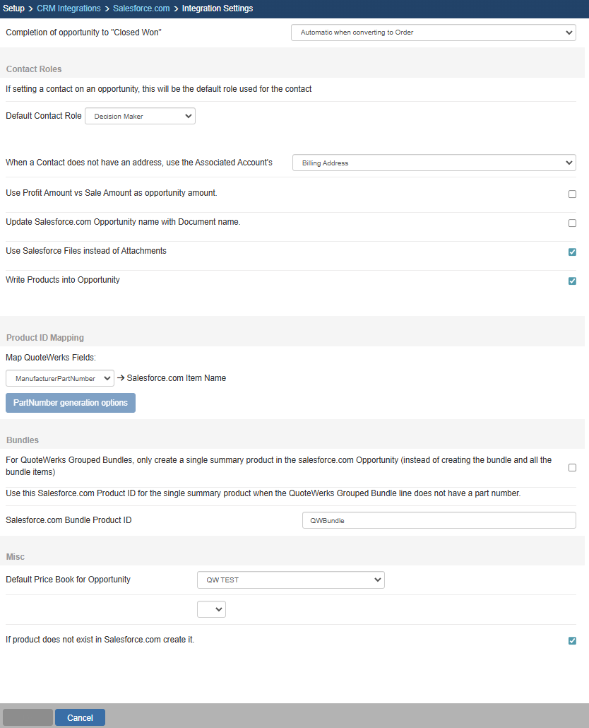 This option will write the QuoteWerks line items into the salesforce.com Opportunity.