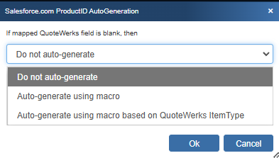 This drop-down box will map the selected QuoteWerks field to the salesforce.com item name.