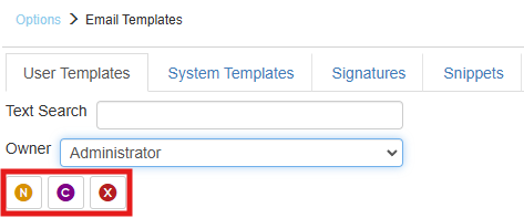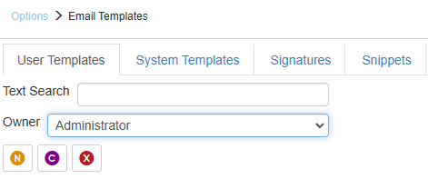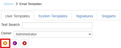 To create a new template, first choose the “Owner” from the drop down list of where you want to create the new, blank template. This is going to create the new template under that user. Click the button to begin with a blank template (New).